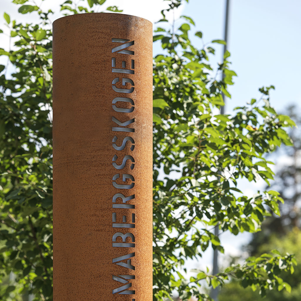 Vi har levererat en informationsskylt till Malmaberg Matskog i Västerås – ett utskuret cortenrör med texten ”Malmabergsskogen”. Skylten, med en diameter på cirka 400 mm och en höjd på tre meter, blir ett hållbart och karaktärsfullt inslag som välkomnar besökare till området och smälter naturligt in i skogsmiljön.