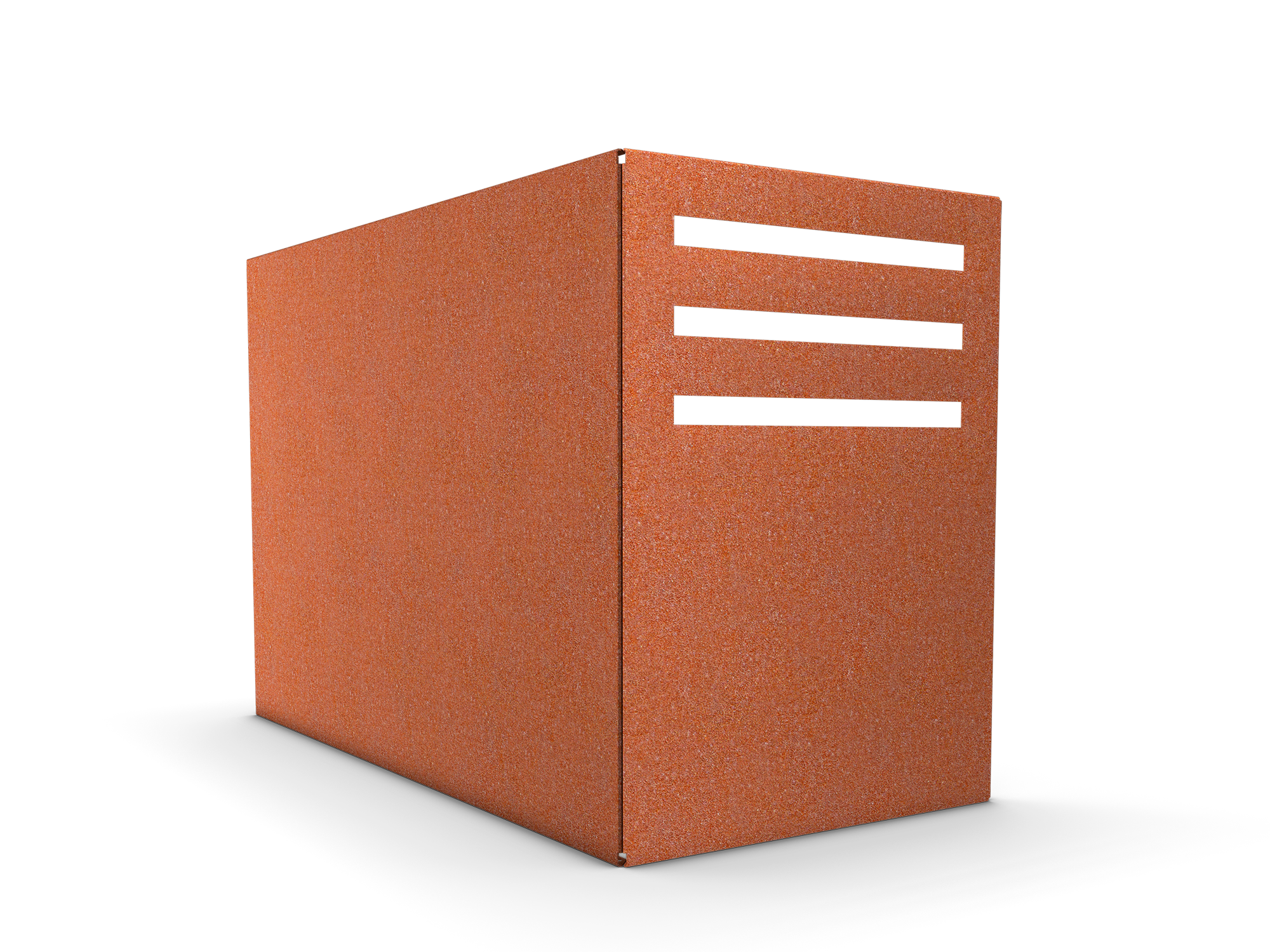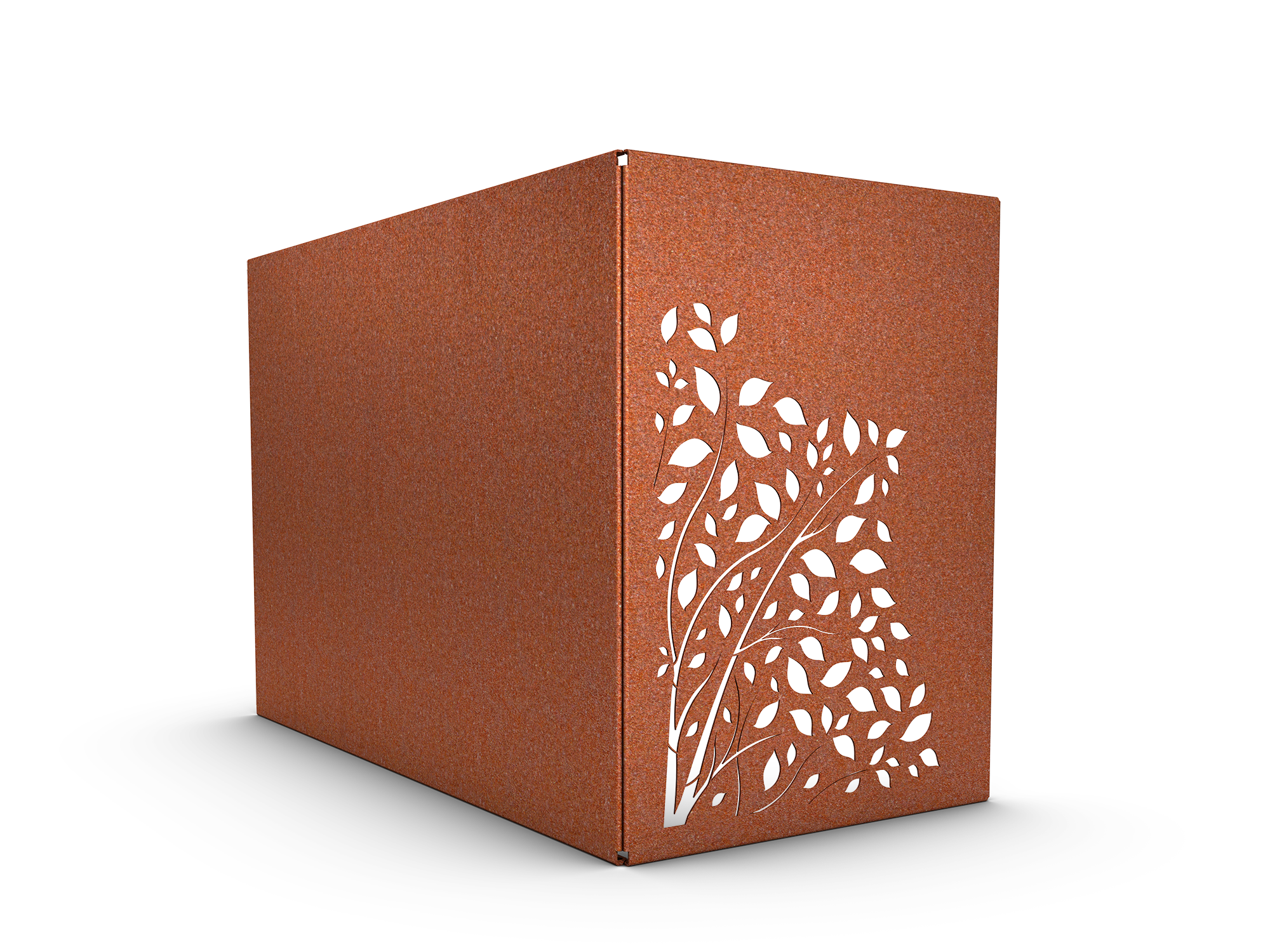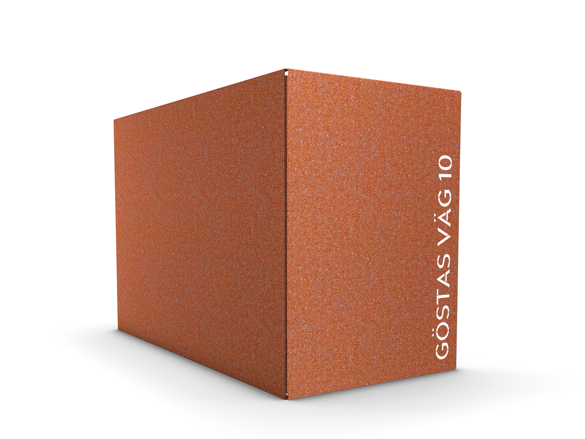 Alla våra produkter i corten levereras i mörkgrå stålfärg och får sin rostbruna patina när produkten exponeras för utomhusmiljö.