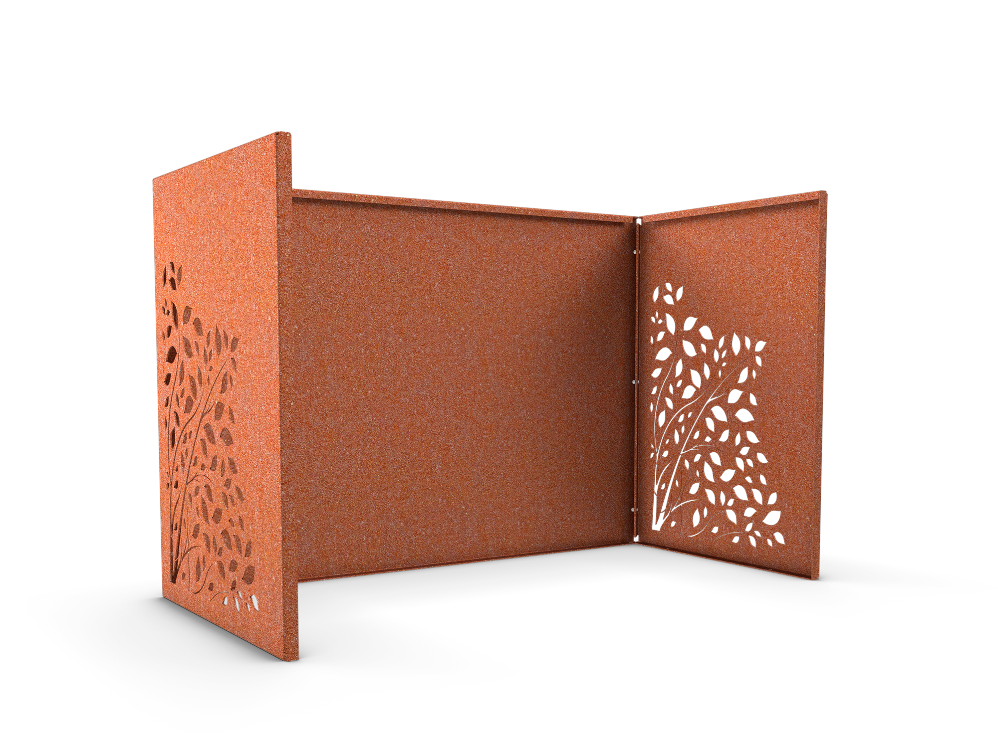 Vårt Sopkärlsskydd Large, även kallat soptunneskydd, är designat för att inte bara skydda och dölja sopkärl utan också ge en elegant och funktionell touch till din utomhusmiljö. Med sina exklusiva inbockade kanter och moderna design passar det perfekt för både privata och offentliga utrymmen. Dessutom är det tillverkat i högkvalitativt cortenstål som gör att produkten blir vackrare för varje år. Skyddet för sopkärl är särskilt utformat för att rymma två stora sopkärl på 370 liter, vilket gör det idealiskt för områden med högre krav på sophantering.