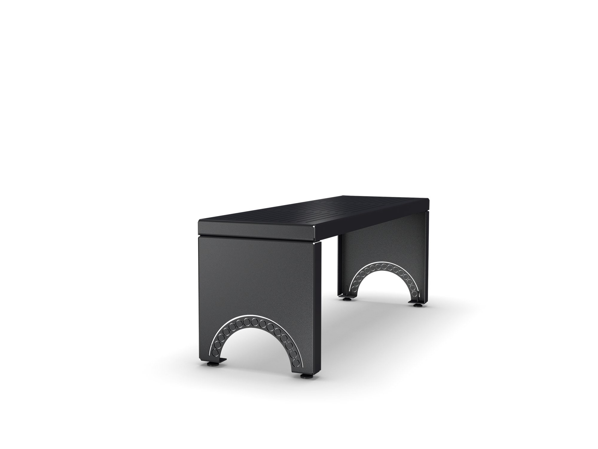 Denna högkvalitativa sittbänk är speciellt utvecklad för att tåla det tuffa nordiska klimatet, vilket gör den till en hållbar lösning som erbjuder en skön plats för avkoppling under många år framöver. Tillverkad i slitstark zinkad plåt (ZM310) och lackerad i en UV-beständig svart kulör. Trädgårdsbänken är utrustad med fyra justerbara fötter, vilket gör att den enkelt kan anpassas till olika underlag och stå stabilt oavsett placering.